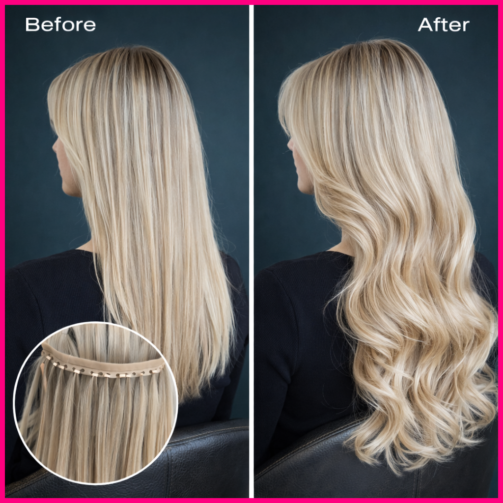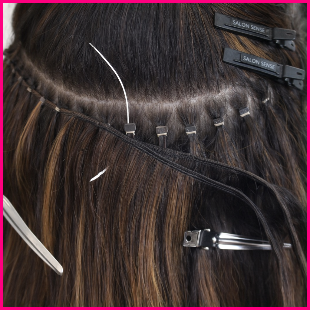 Our braidless weave uses microbeads to install extensions without braiding, creating a natural, comfortable result. Precision placement reduces scalp tension and minimizes damage while allowing seamless, versatile styling. Lasts 8-10 weeks and is ideal for clients wanting a lightweight, natural-looking transformation.