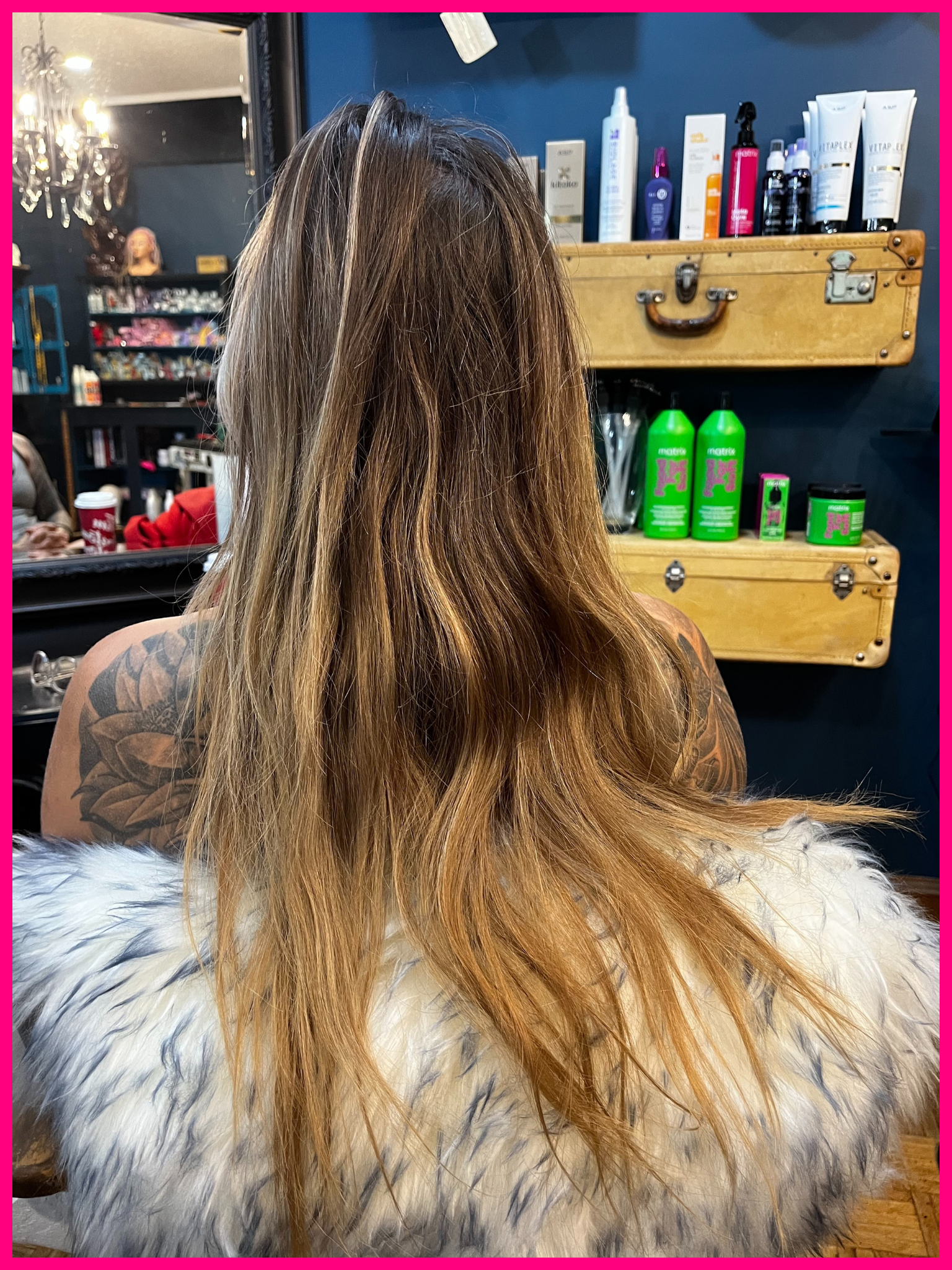After years of wearing black all-over color, this client began transitioning to a lived-in blonde that blends her natural white hair while keeping her length and softness. A gradual, healthy transformation that shows the power of patience and precision.